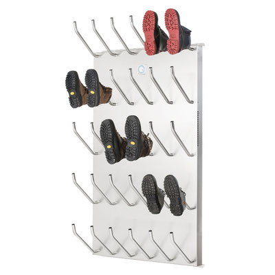- Schuhspitzen zeigen immer nach Oben, was eine effizientere Trocknung ermöglicht