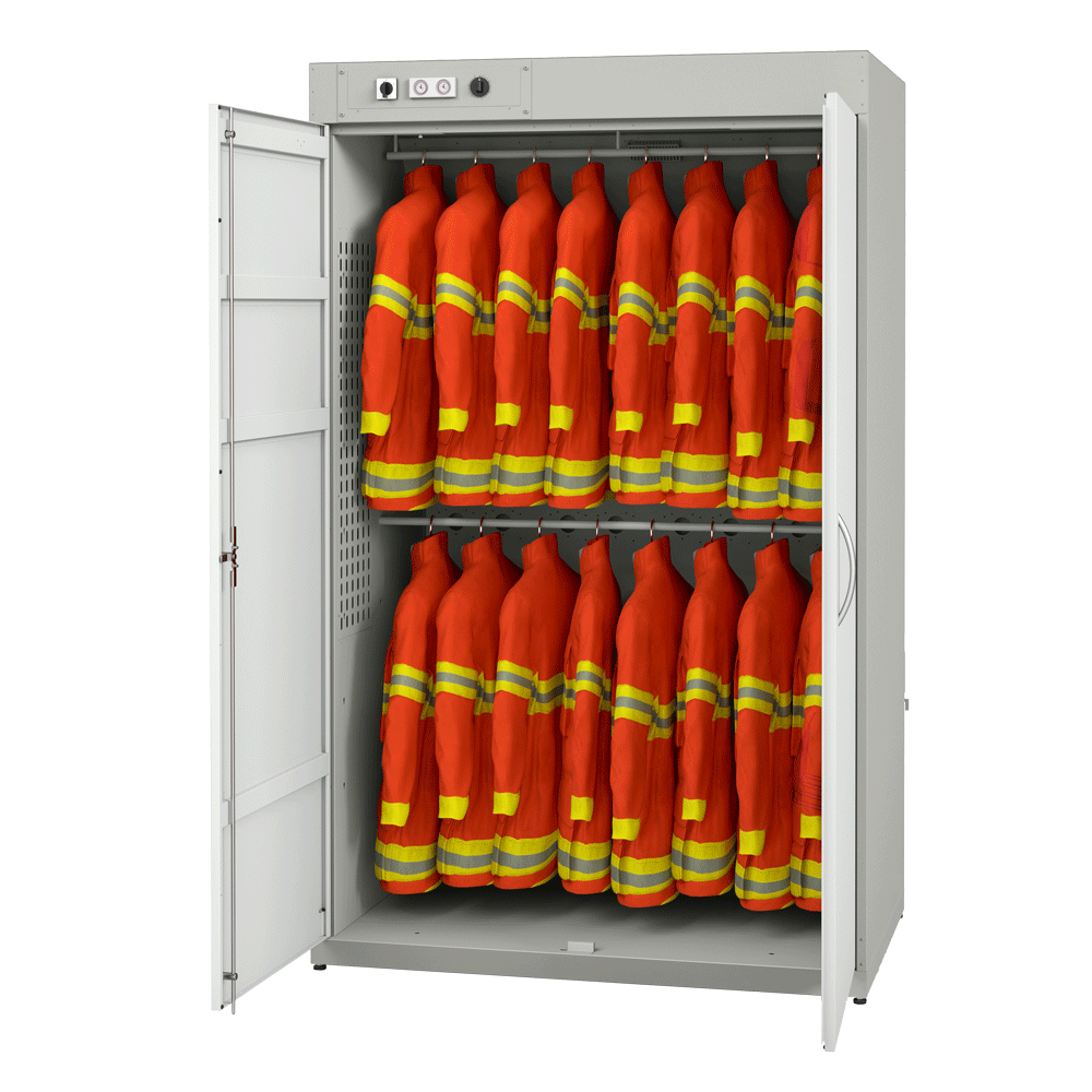 - Schnelle, materialschonende Trocknung der Einsatz- und Arbeitskleidung