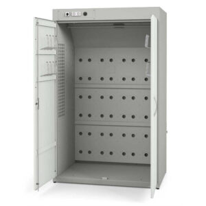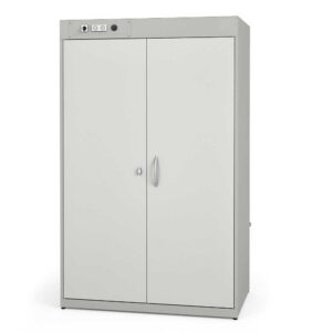 Der beheizte Trockenschrank mit Kondensationstrocknung führt zu schnellen und effizienten Resultaten beim Trocknen von bis zu 8 nassen Arbeitsjacken und –hosen. In allen Räumen ab einer Temperatur von 7 °C trocknet der Garderobenschrank mit Kondensationstrocknung die Bekleidung energiesparend und schonend. Somit entsteht die Möglichkeit, schon nach wenigen Stunden erneut in trockene und wohlig warme Hosen und Jacken zu schlüpfen. Dank fortschrittlichster Kondensationstrocknung wird der Kleidung zunächst behutsam Feuchtigkeit entzogen und anschliessend mit Hilfe von gekühlten Kupferrohren vollständig erkaltet. Das Kondensat kann währenddessen unkompliziert über einen vorhandenen Wasserablauf mit Schlauchanschluss 1/4″ abgeleitet werden. Der beheizte Trockenschrank für Kleider eignet sich erstklassig für den Gebrauch in Skibetrieben, in vielen Sportbereichen, der Bauindustrie, Forstwirtschaft, Feuerwehr, Hotels und der Polizei.